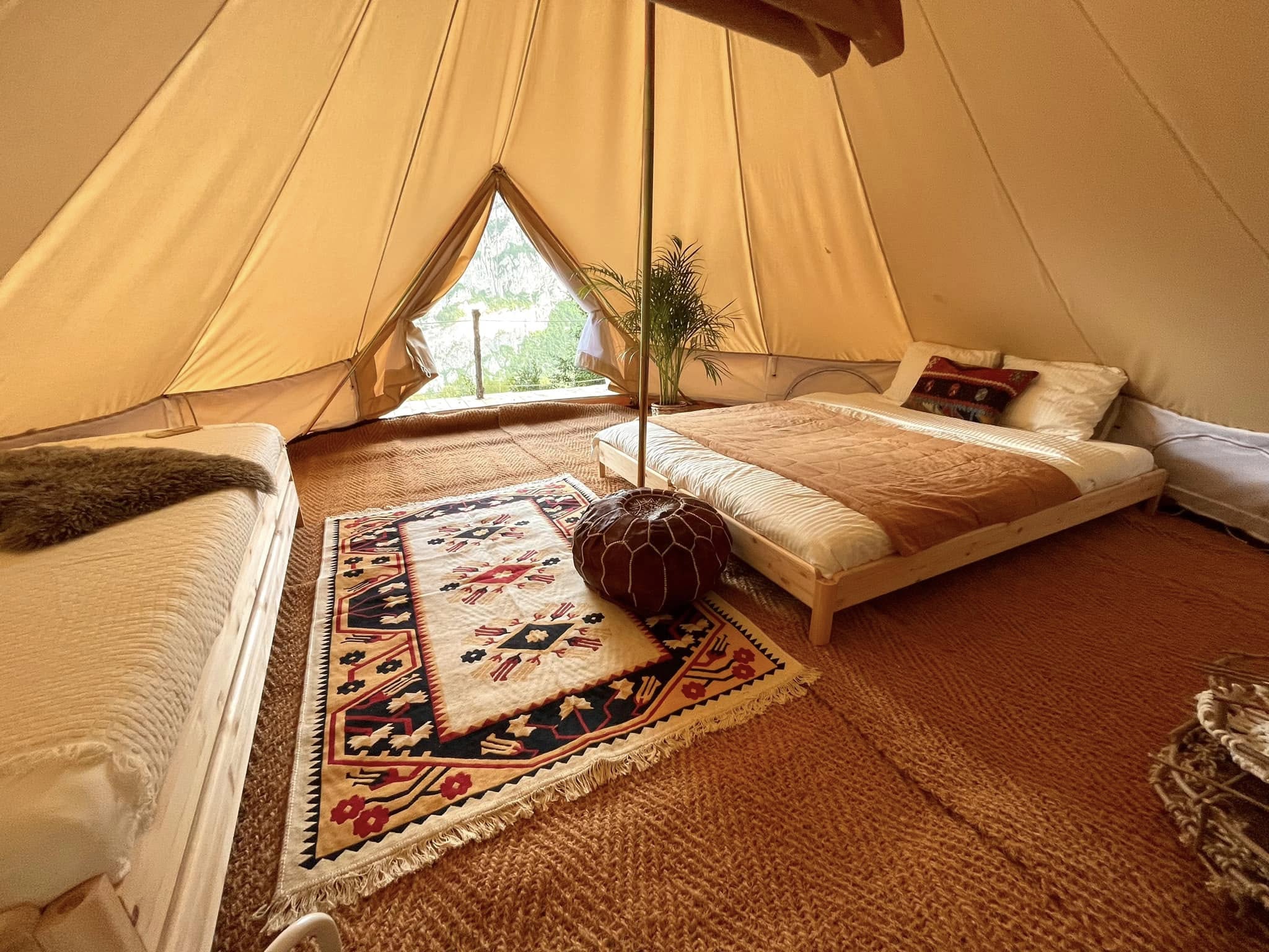 Камп се састоји од шатора опремљених свим потребама за пријатан боравак, од удобних кревета до модерних купатила. Осим тога, гости могу уживати у квалитетној храни која се припрема од локалних производа.